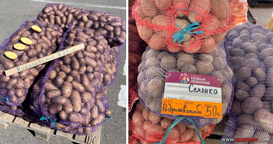 Много «старой» перезимовавшей картошки. На оптовых рядах популярный сорт беларусского картофеля «Королева Анна». Его можно купить в большом мешке за 0,35 копеек за кг. Картофель на посев в среднем стоит 0,50 коп. за килограмм.