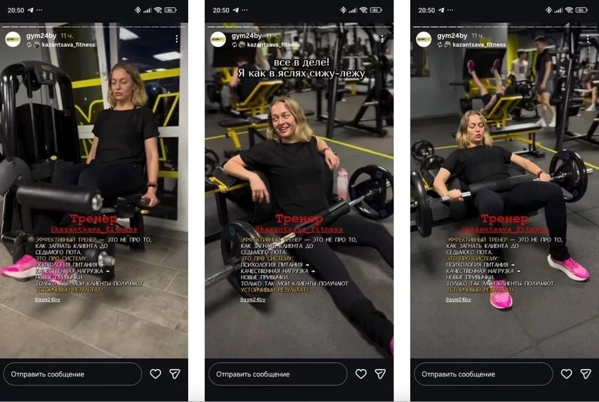 Нібыта скрыншоты са сторыз, на якія папала Анжаліка Мельнікава. Іх першапачаткова даслалі ўкраінскаму блогеру Аляксандру Рыкаву (BalaganOFF).