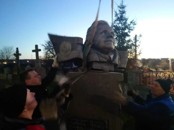 Газета Народная Воля опубликовала снимок, на котором несколько людей демонтируют памятник поэтессе Ларисе Гениюш в Зельве.