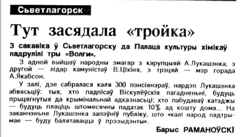 З артыкула «У нас будзе прэзыдэнт», апублікаванага ў газеце «Свабода»