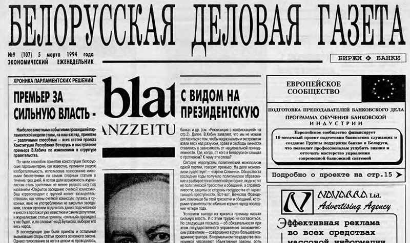 Газета «Свабода», №8, сакавік 1994-га. Тут і далей – сканы беларускіх незалежных газет, якія захоўваюцца ў інтэрнэт-бібліятэцы Камунікат