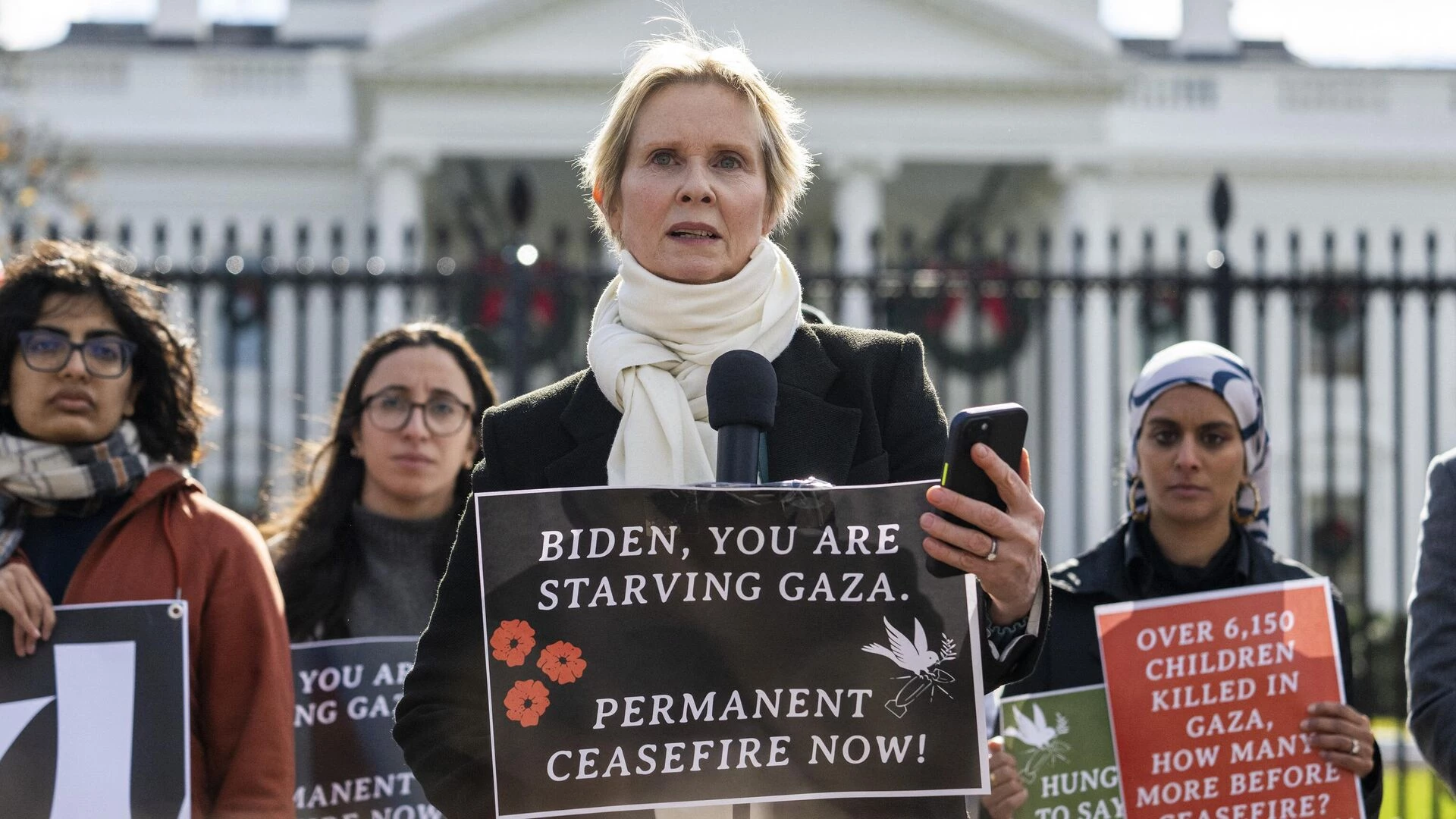 Осенью 2023-го Синтия Никсон объявила пятидневную голодовку ради перемирия Израиля с Палестиной, уточнив, что она «мать еврейских детей, чьи бабушки и дедушки пережили холокост... Мне надоело мнение, что жертвы среди гражданского населения — обычные потери на войне. В этих цифрах нет ничего рутинного. В этих смертях нет ничего обычного. Все это ненормально. Это не может стать обыденностью, и этому нельзя позволить продолжаться».