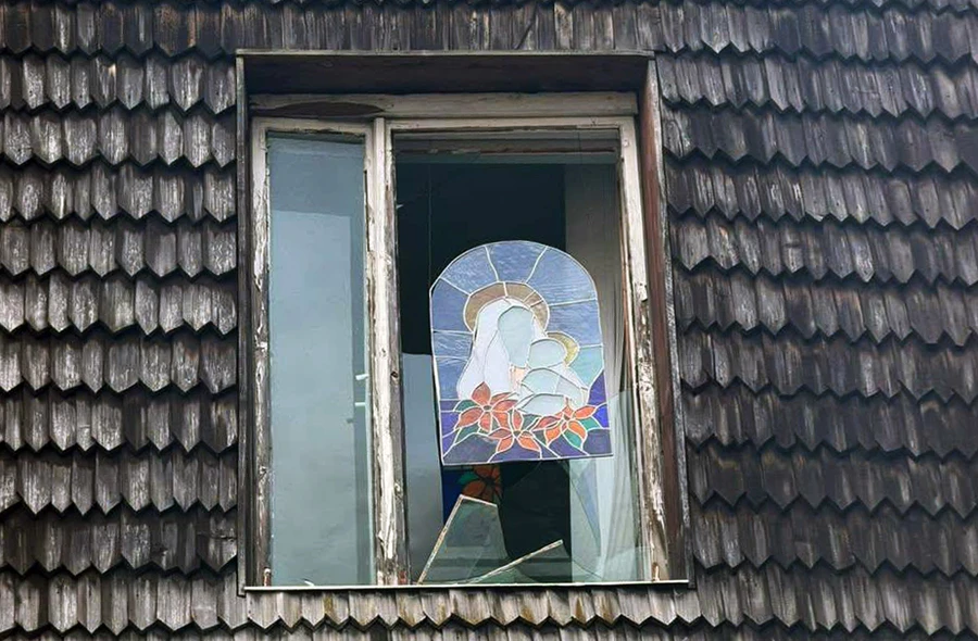 Разбитое окно в пристройке церкви Св. Андрея во Львове, 24 марта 2026-го