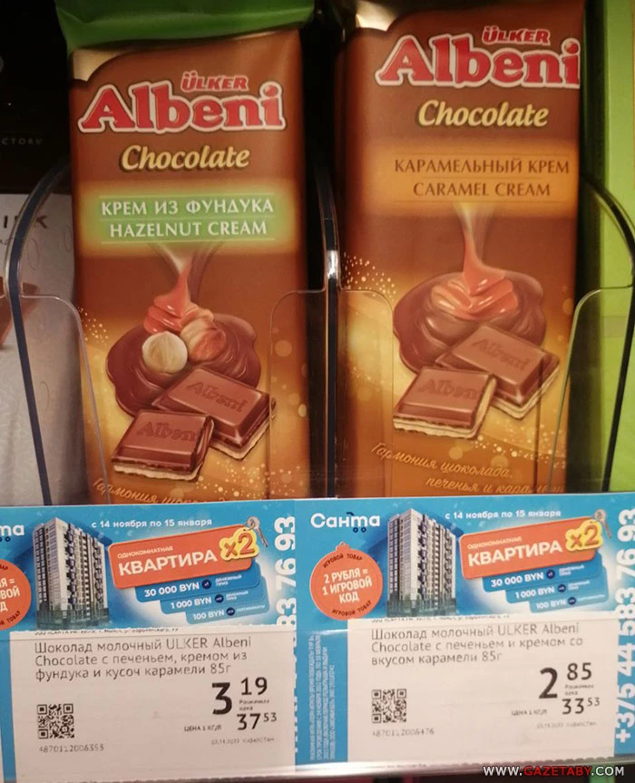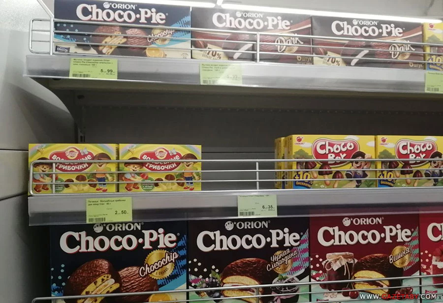 Особенно грустно в эти предпраздничные дни смотреть на витрины со сладостями. Не везде радуют даже новогодние стенды. Из неожиданных новинок кое-где обнаружен шоколад из Казахстана, именно тот, которым казахи троллили российских беглецов, предлагая «попробовать вкус свободы».