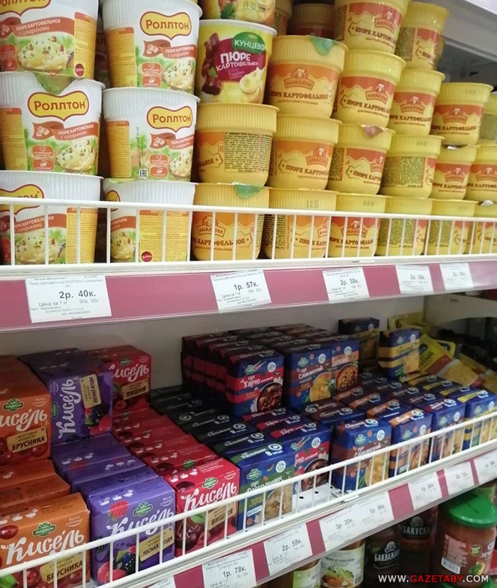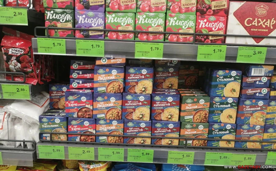 Из непривычного: практически в каждом магазине появилась отдельная полка, а то и пару с киселем «Лидкон». Именно с тем, несколько пачек которого всегда пристраивались где-то внизу или сбоку.