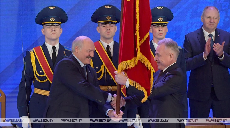 Александр Лукашенко вручает ФПБ «Почетное государственное знамя», 2020 год