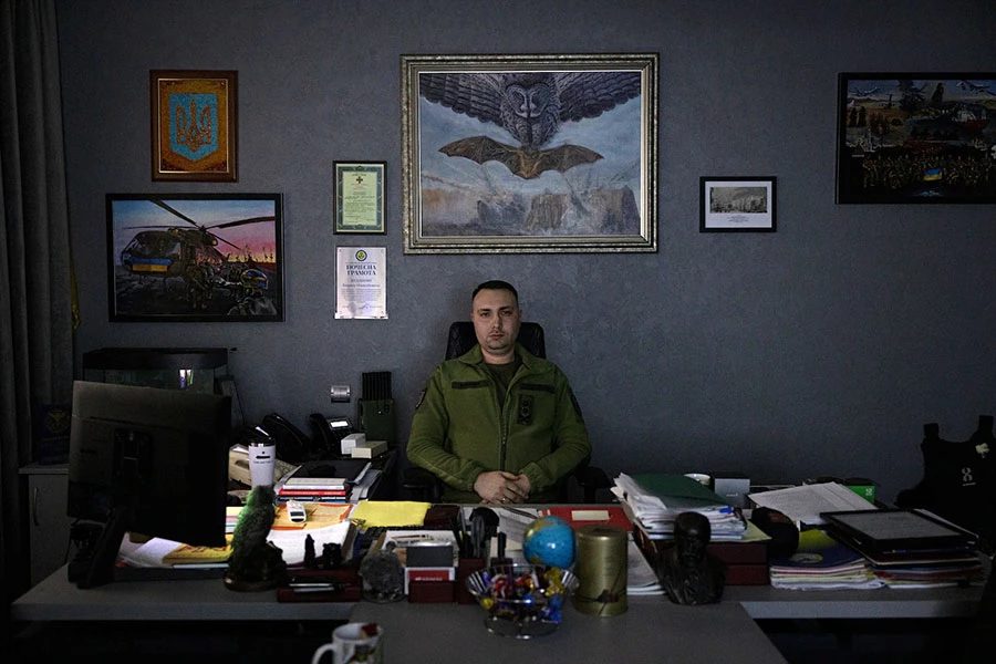 Рядом с его рабочим столом лежит груда бронежилетов и пулемет 50-го калибра, и они не для показухи. Буданов регулярно ездит на передовую в Бахмут, Авдеевку, «везде», – говорит он. «Иногда мне необходимо быть с моими людьми, чтобы мотивировать их. Я не принимаю оправданий, почему кто-то что-то не может сделать. Поэтому задача всегда будет выполнена», – подчеркивает Буданов…