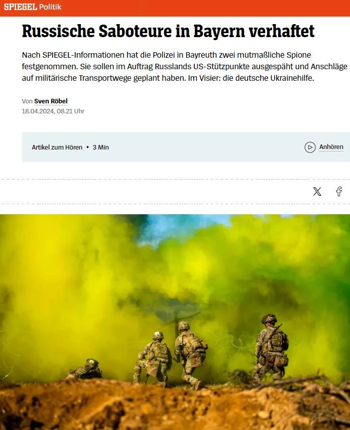 В Баварии задержали двух российских шпионов, планировавших диверсии на военно-транспортных путях и пытавшихся сорвать немецкую помощь Украине, пишет Spiegel.