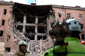 Снаряды попали в фасад здания администрации главы «ДНР» Дениса Пушилина в центре Донецка. Местные СМИ пишут, что пострадало правое крыло и верхний этаж, в здании начался пожар. Пушилин не пострадал.