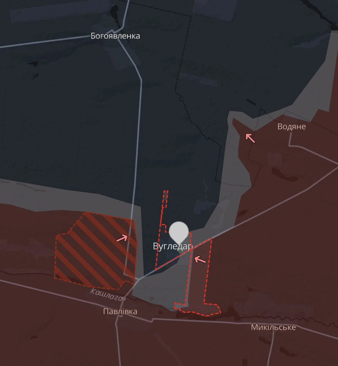 При этом выход на трассу был южнее, чем развилка на Угледар. Поэтому, если судить по карте, сообщение с городом физически не перерезано. Но в самом городе захвачены уже юго-восточные кварталы.