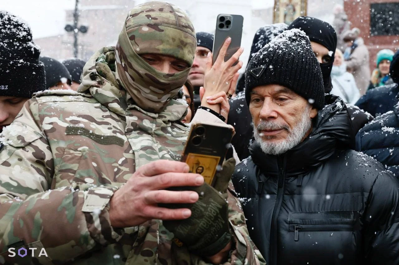 Российский певец-пропагандист Олег Газманов срезал все логотипы Prada с шапки и куртки класса люкс перед выступлением в Нижнем Новгороде. Вместо букв на шильдике шапки осталось просто черное поле. То же произошло и с красной брендированной полоской на куртке.
