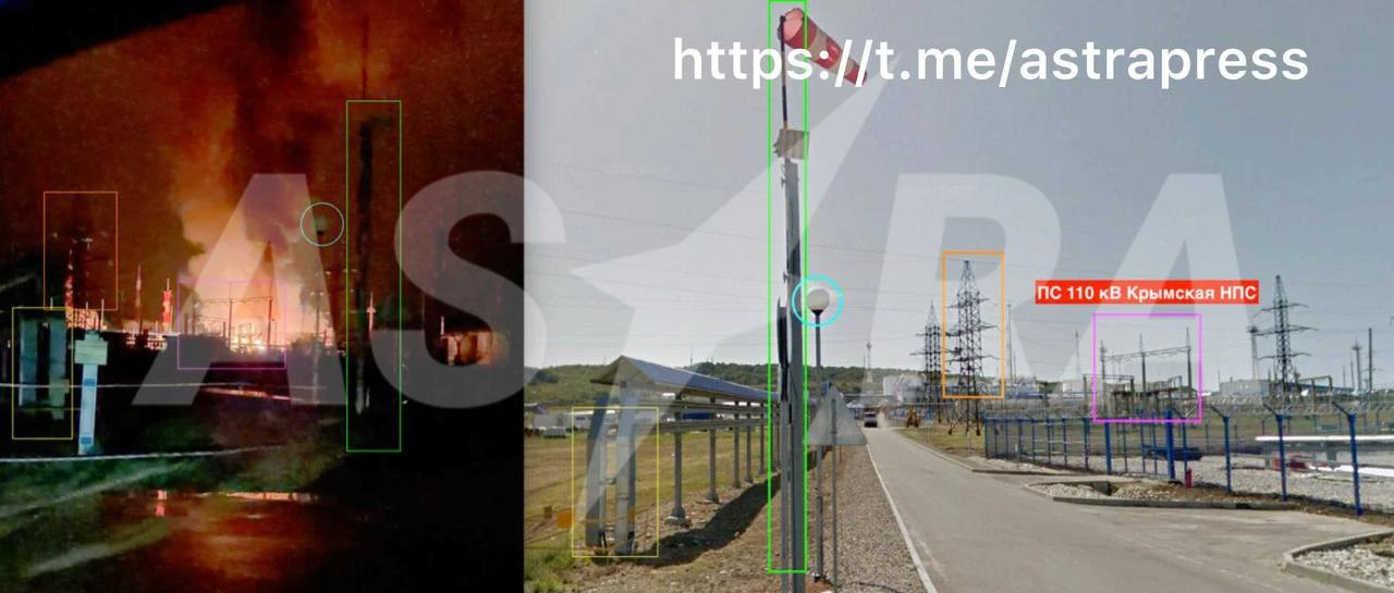 В распоряжении ASTRA оказались кадры с места пожара в Крымске. Согласно наему анализу, атаке подвергалась Крымская линейная производственно-диспетчерская станция (ЛПДС). Это объект нефтепроводной инфраструктуры, входящий в систему магистральных трубопроводов. Загорелась Подстанция ПС 110 кВ «Крымская НПС». Она находится на территории ЛПДС «Крымская» (Линейная производственно-диспетчерская станция) АО «Черномортранснефть».