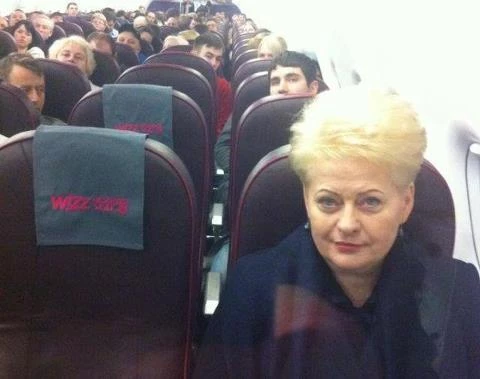 Такой Далю Грибаускайте запечатлели на борту лоукоста WizzAir, когда она летела в Лондон на похороны Маргарет Тэтчер